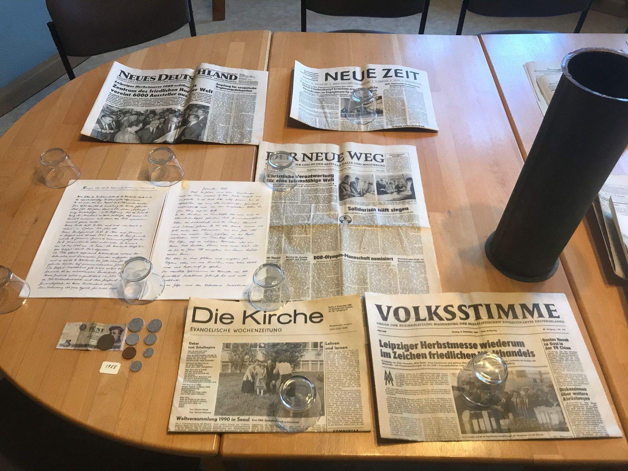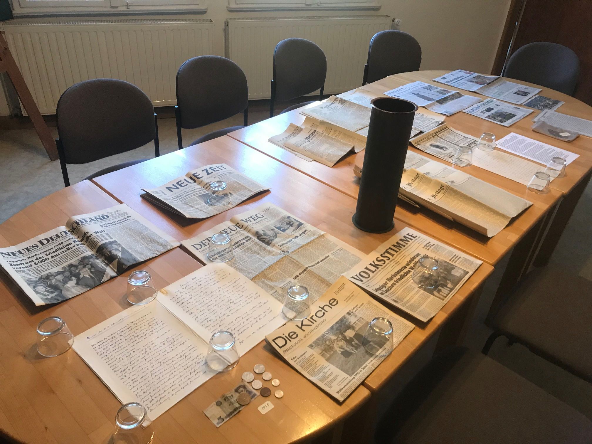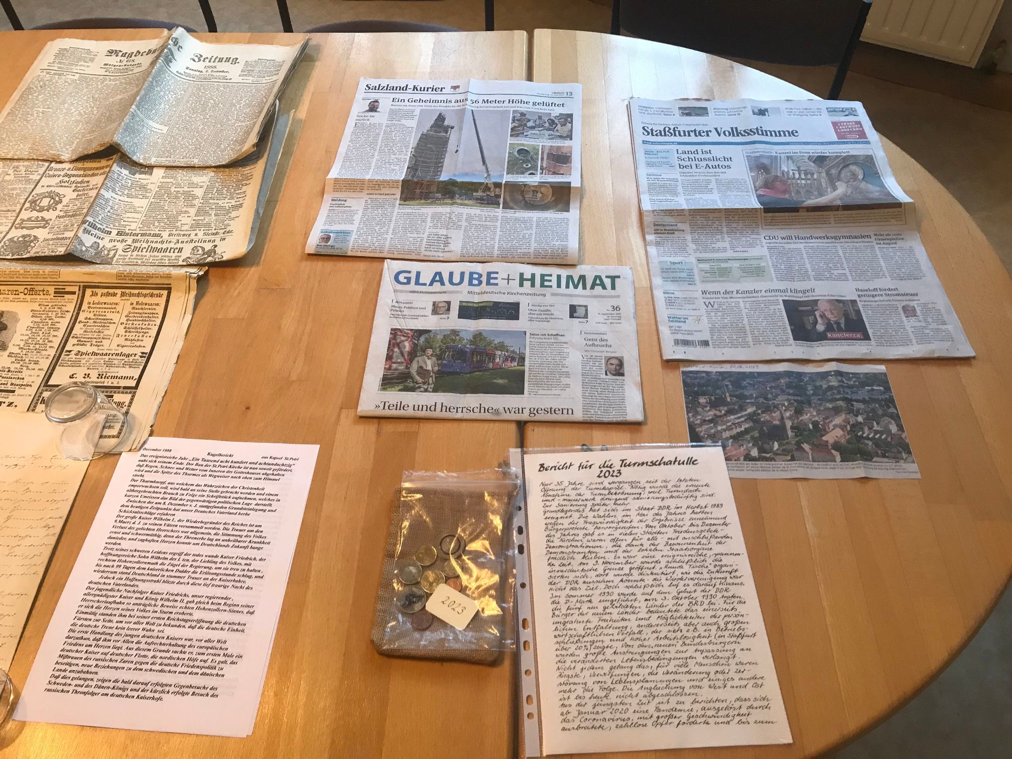 dauerhaft ausgestellt. Die verlötete Kupferkapsel mit den Schriftstücken sowie einiger Münzen der