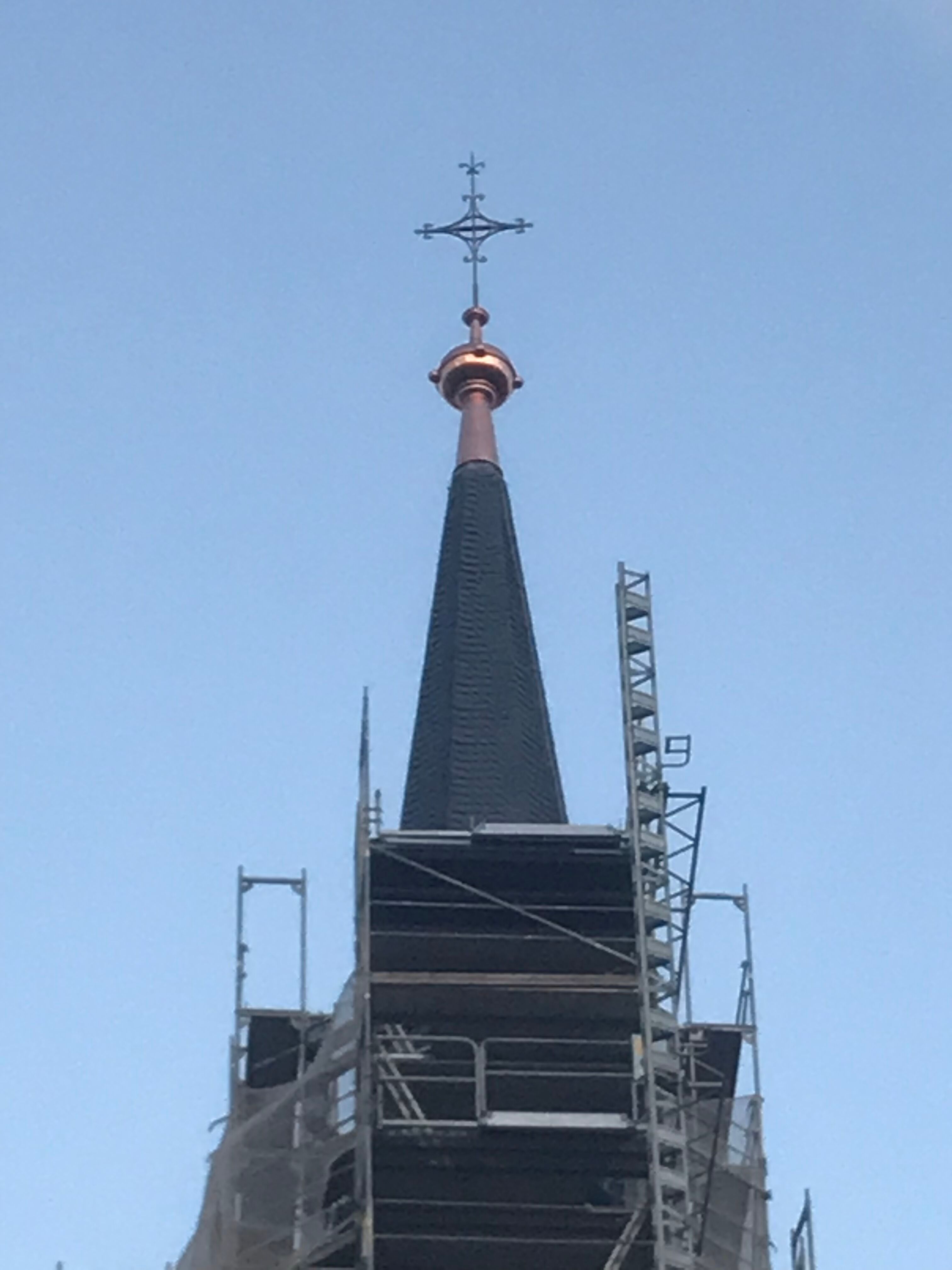 Neueindeckung mit Schiefer, der Turmknopf ist eine Neuanfertigung aus Kupfer nach historischem Vorbild, lediglich das